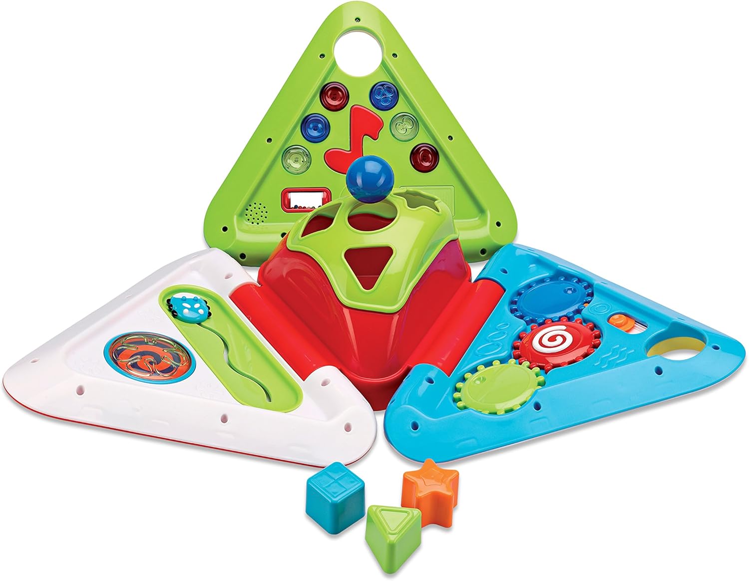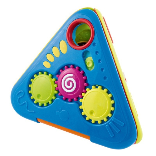 Это не просто пирамидка — это целый игровой центр: каждая сторона предлагает новый формат игры. Шестерёнки можно крутить, шарики — запускать, элементы — двигать и нажимать. Ребёнок исследует, пробует, повторяет — и каждый раз находит что-то новое.