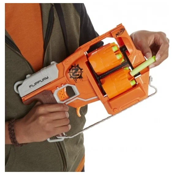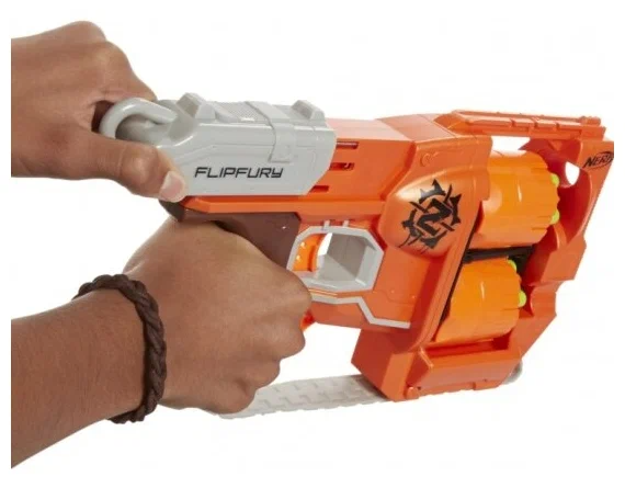 Бластер выстреливает мягкими стрелами серии Zombie Strike (или Elite, совместимыми), обеспечивает яркое ощущение игры и безопасен для детей. Он прост: вставил батарейки или натянул пружину — и игра началась.