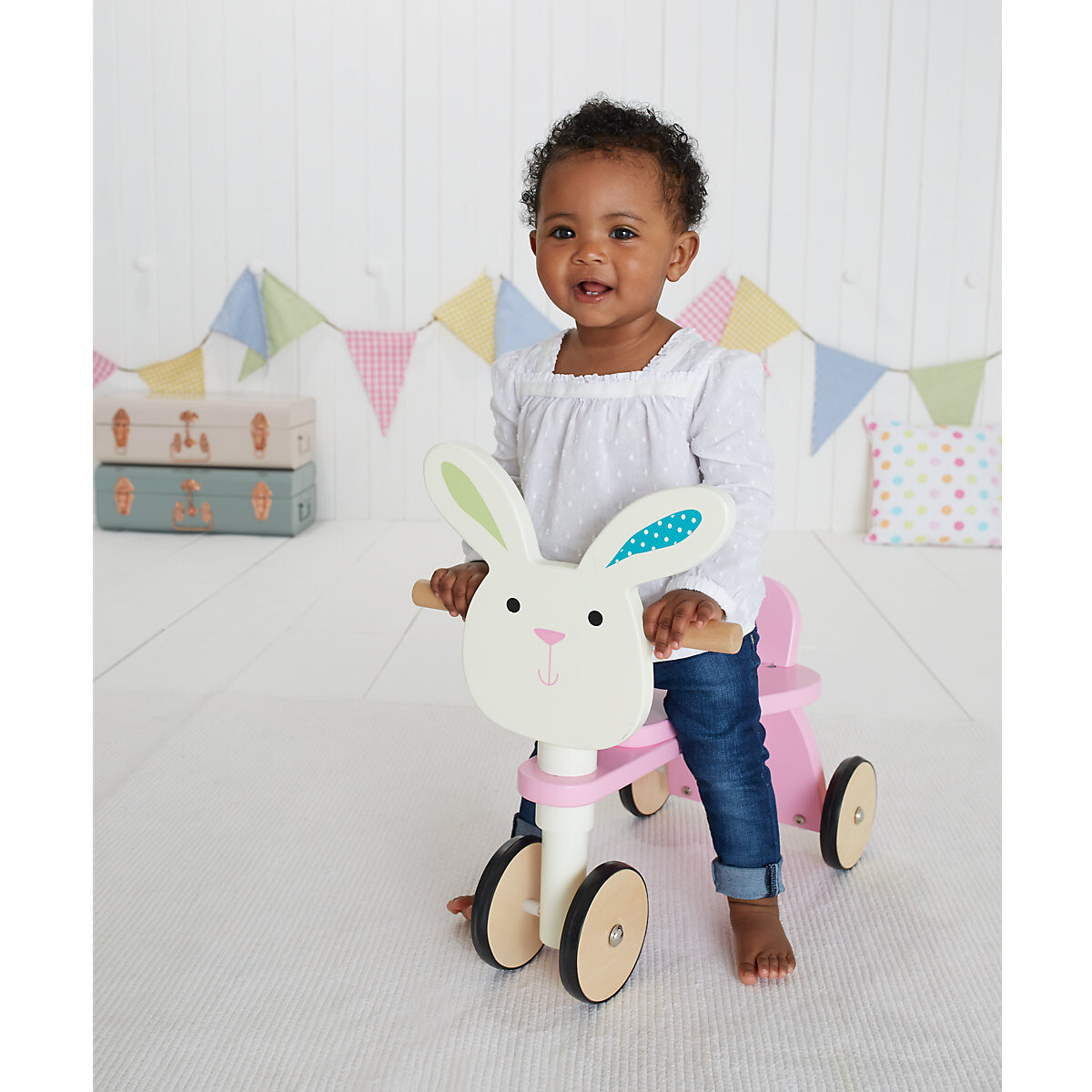 Умилительный зайка увезет вашего малыша навстречу веселым приключениям! Каталка выполнена в розово-белой гамме, руль - в форме симпатичной заячьей мордочки. Каталка оснащена большими колесами с резиновыми накладками для устойчивости и безопасности. Игрушка прекрасно подходит для физического развития ребенка и развития его координации. Выполнена из безопасного и качественного материала.