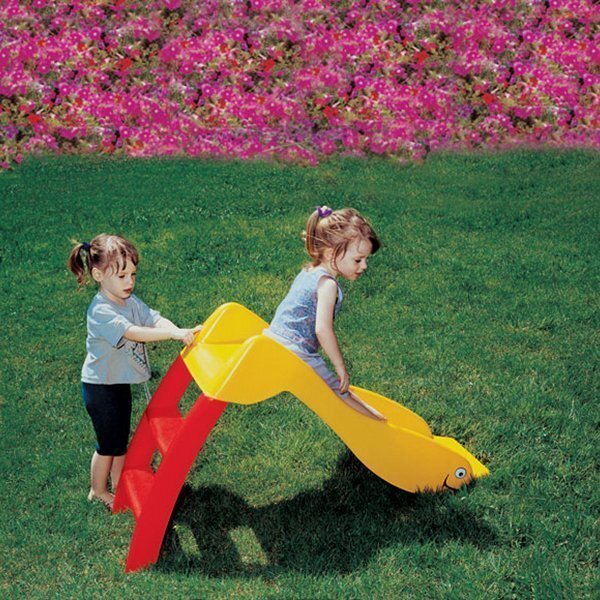 В собранном виде горка не занимает много места, ее легко собирать и разбирать. Благодаря тому, что пластик, из которого сделана горка, устойчив к воздействию солнечных лучей и других природных явлений, использовать горку можно не только дома, но и на улице. Горка оснащена удобной лесенкой с безопасными ступенями, устойчива и надежна.
