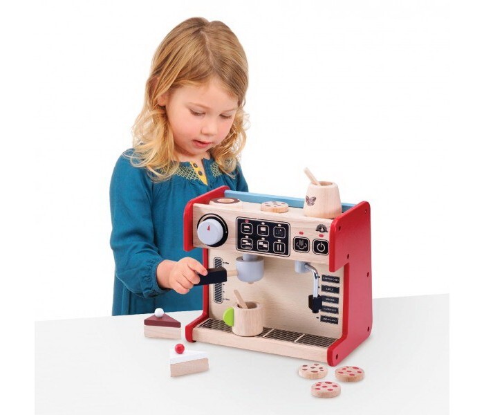 Двухсторонняя компактная кофемашина - оборудование для современной детской кухни. С одной стороны - это реалистичная кофеварка, а с другой - витрина с пирожными. С этим игровым набором ребенок почувствует себя настоящим бариста. Ребенок может безопасно имитировать процесс приготовления напитков, развивая мелкую моторику, воображение и навыки координации.
