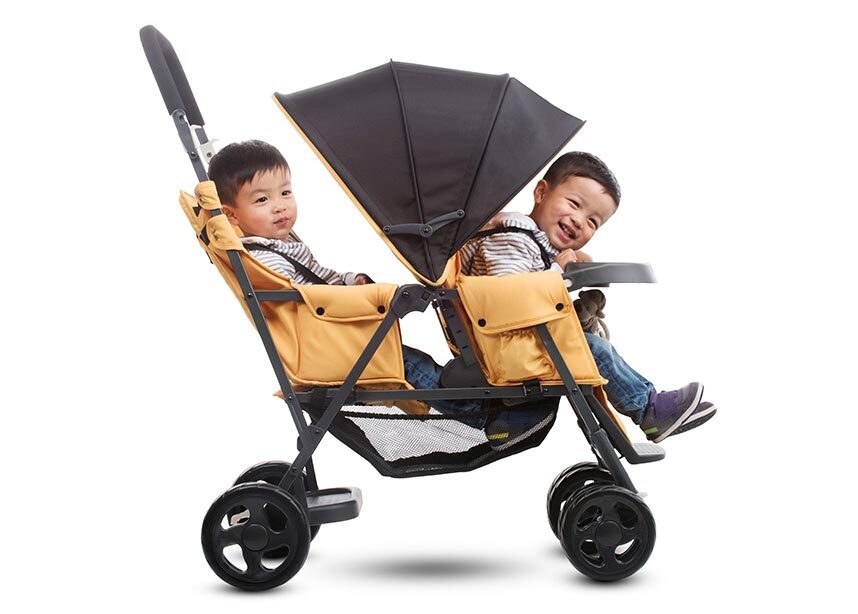 Joovy Коляска для погодок Caboose Graphite - невероятно компактная и маневренная прогулочная коляска для погодок или двойни. Предназначена для детей в возрасте от 3 мес (переднее сидение) и от 2,5 лет (заднее сидение).