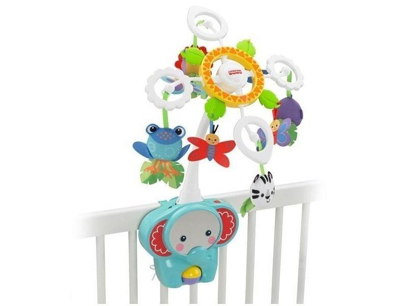 Электронный мобиль «Друзья из тропического леса» от компании Fisher Price — это весёлое развлечение для малыша и одновременно возможность развиваться в игре.