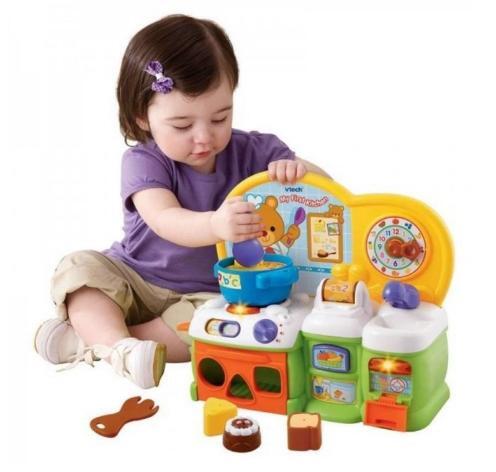 На очаровательной маленькой кухне малыш сможет приготовить суп из алфавита, поиграть с духовкой-сортером, а также узнать много нового.