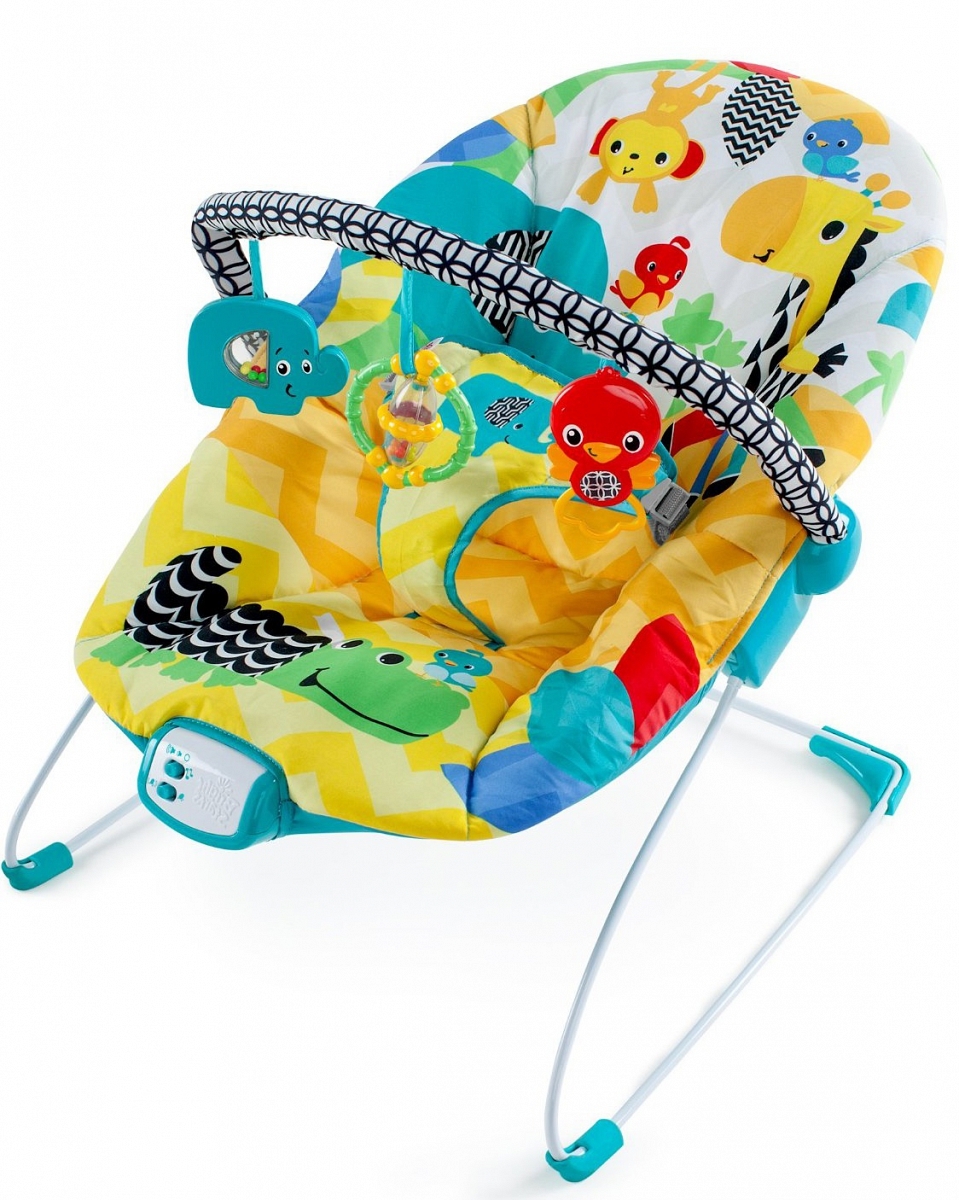 Шезлонг Bright Starts "Солнечное сафари" - обеспечит максимальный комфорт и уют вашему малышу, а яркие игрушки развлекут ребёнка. Кресло оснащено успокаивающими приятными мелодиями и функцией лёгкой вибрации. Шезлонг легко складывается и не занимает много места, что позволяет взять его с собой в поездку или убрать на хранение.